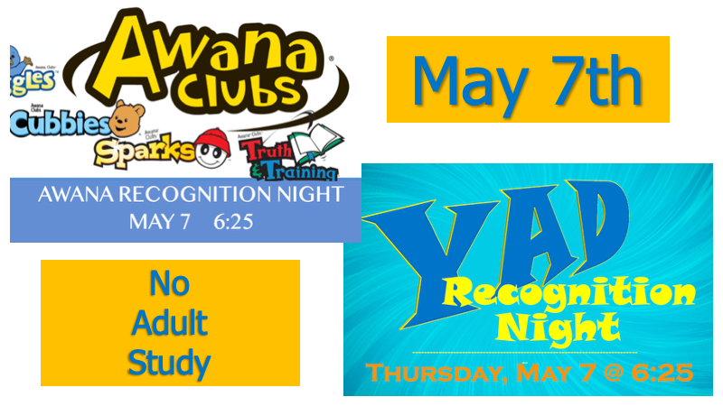 AWANA & Y.A.D. Recognition Night! – May 7, 6:25 p.m. ~ “CELEBRATE!” Clubbers Date May 7, 2026 Time 6:25 pm – 8:00 pm AWANA & Y.A.D. Club Recognition Night (NO Adult Classes) Address 1540 E. Paw Paw Pike Peru IN 46970 Directions Venue EastPointe Bible Church Category Announcement, Annual, Special Join in applauding EBC Awana clubbers. (NO ADULT Classes) “Job WELL DONE in 2026 AWANA clubbers!”