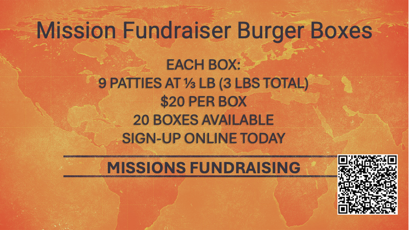 Our Mission Fundraiser Burger Boxes include 3 pounds of patties —9 patties at ⅓ lb each, perfect for grilling and family meals. Only 20 boxes remain and stored in theEBC kitchen freezer. -> Sign-up <- here and grab yours while they’re available!