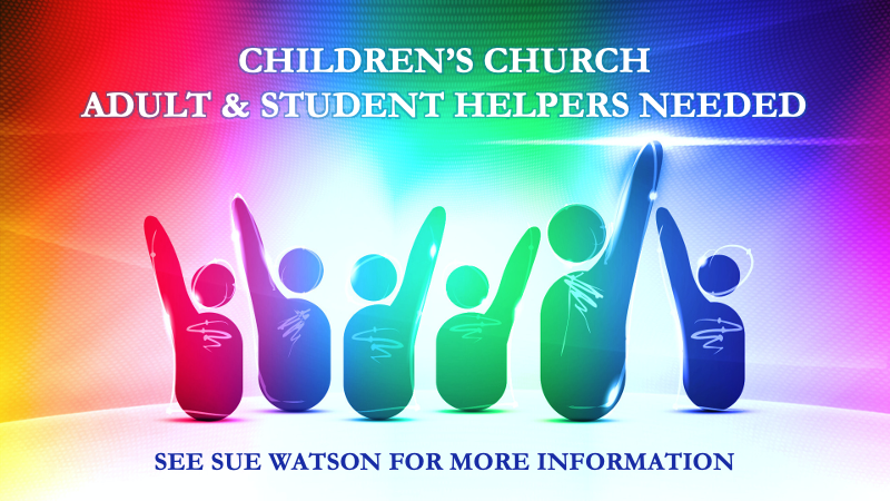 Children’s Church needs you! We are seeking teachers and adult and student helpers to serve our 3–5 year-olds. A SIGN-UP sheet is available at the EBC Connect Center. If you have questions, please, see Eric or Sue Watson. EBC Children’s Church HELPERS > Give a “Yes!” to nourishing the next generation.